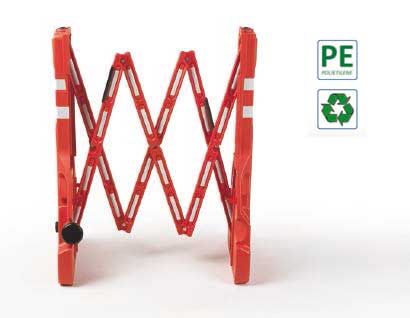 Moderna barriera di sicurezza estensibile ad alta visibilità progettata per garantire la massima praticità di trasporto ed utilizzo nella segnalazione di lavori stradali e chiusura di accessi.