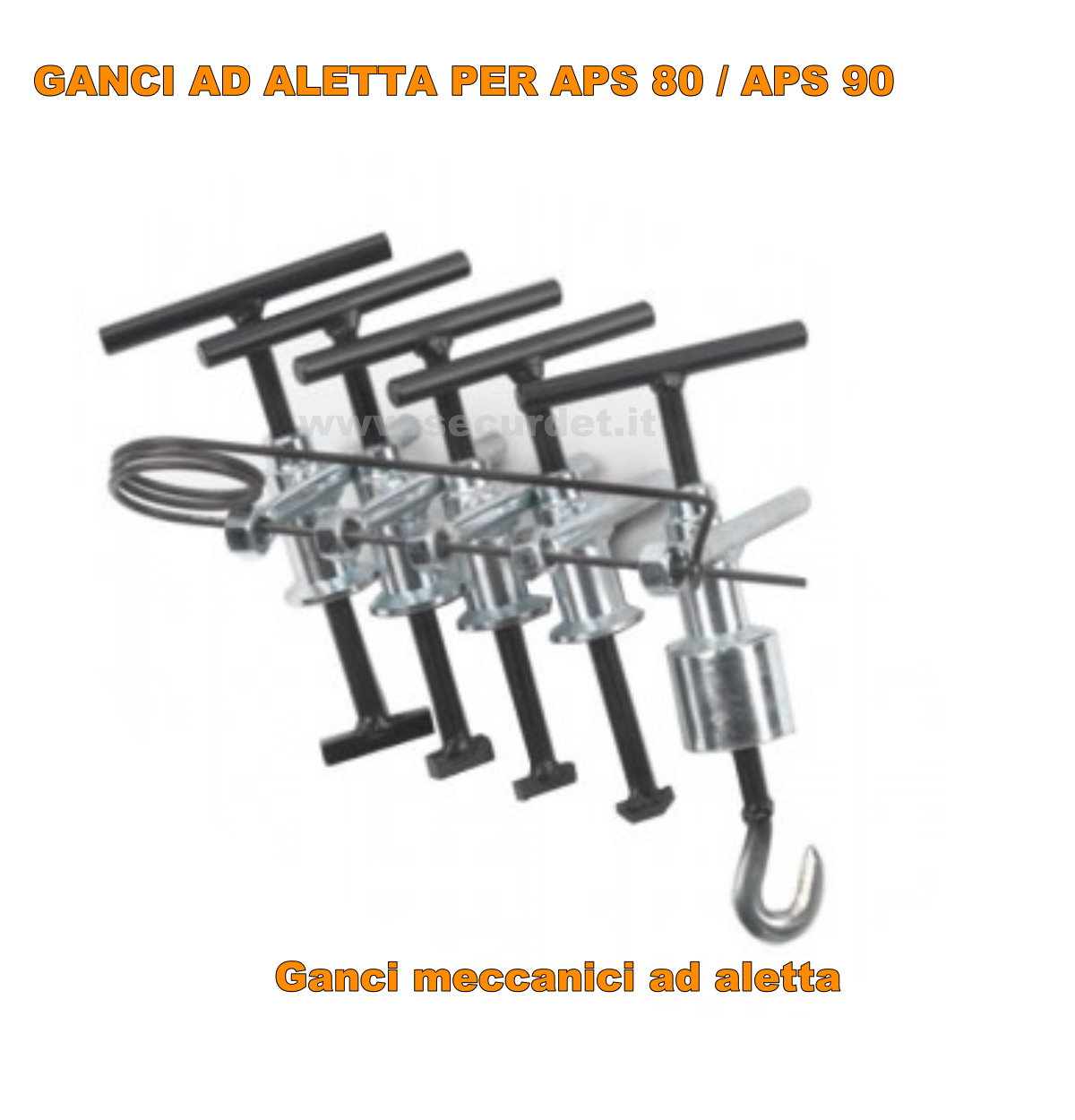 Set è composto da 5 differenti morsetti ad “aletta” ed a gancio le cui dimensioni permettono di entrare ed impegnare la maggior parte dei chiusini e di fornire un solido punto di presa della leva pieghevole APS90 o APS80, i morsetti sono forniti in uno spillone di trattenimento che ne impedisce lo smarrimento.
