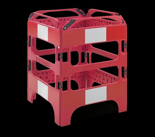 Pratico, compattissimo e leggero cancelletto di sicurezza ideale per la segnalazione e messa in sicurezza di chiusini aperti durante i lavori di manutenzione di reti e servizi interrati.